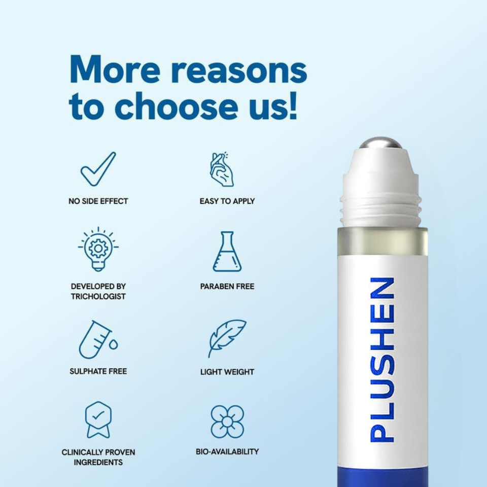 Experience advanced hair care with PLUSHEN. A safe, lightweight, and effective roll-on serum designed to nourish your scalp and promote healthy hair growth.